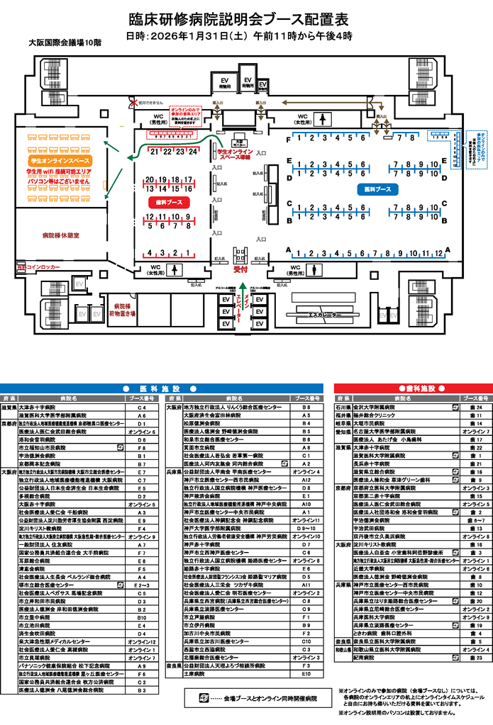 近畿地区 臨床研修病院説明会 ブース配置図